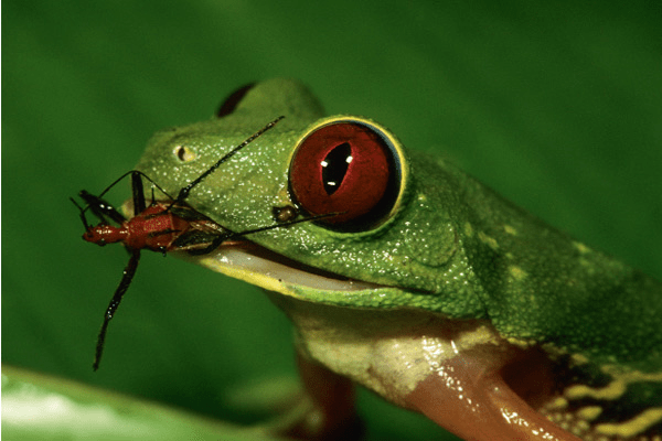 Some species of frogs will eat almost anything, including insects and even other smaller frogs. The grey tree frog is one of the only species in the USA to include mosquitoes on their regular menu.