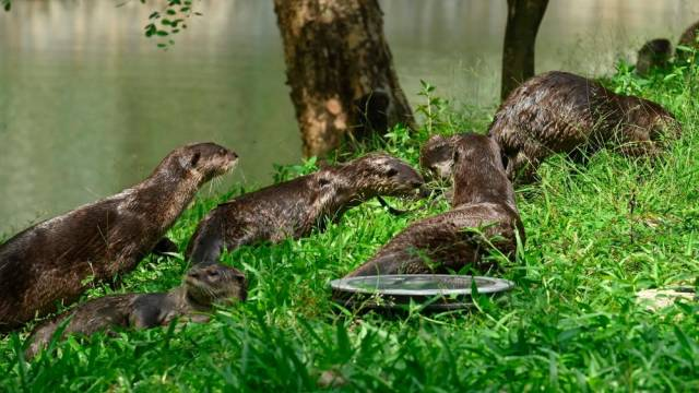 It’s a family of seven otters, likely on their way to their den at the Singapore Botanic Gardens. Commuters sitting in evening traffic appear oblivious, likely already accustomed to seeing the charismatic mammals traipsing about this Southeast Asian metropolis of 5.7 million.