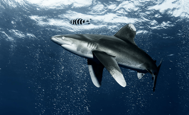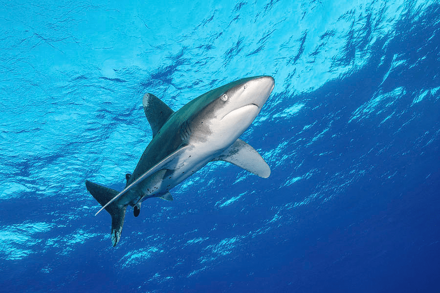 Oceanic white tip sharks have a strong preference for the surface mixed layer in warm waters above 20°C, and are therefore considered a surface-dwelling shark.