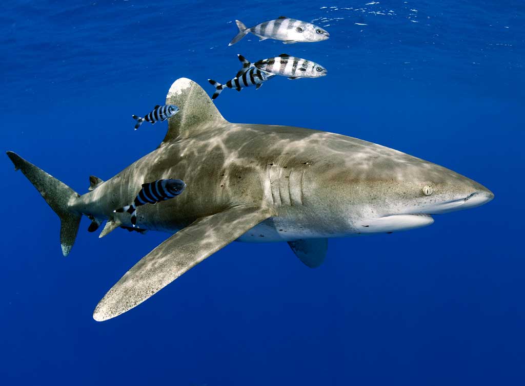 Oceanic white tip sharks have a strong preference for the surface mixed layer in warm waters above 20°C, and are therefore considered a surface-dwelling shark.
