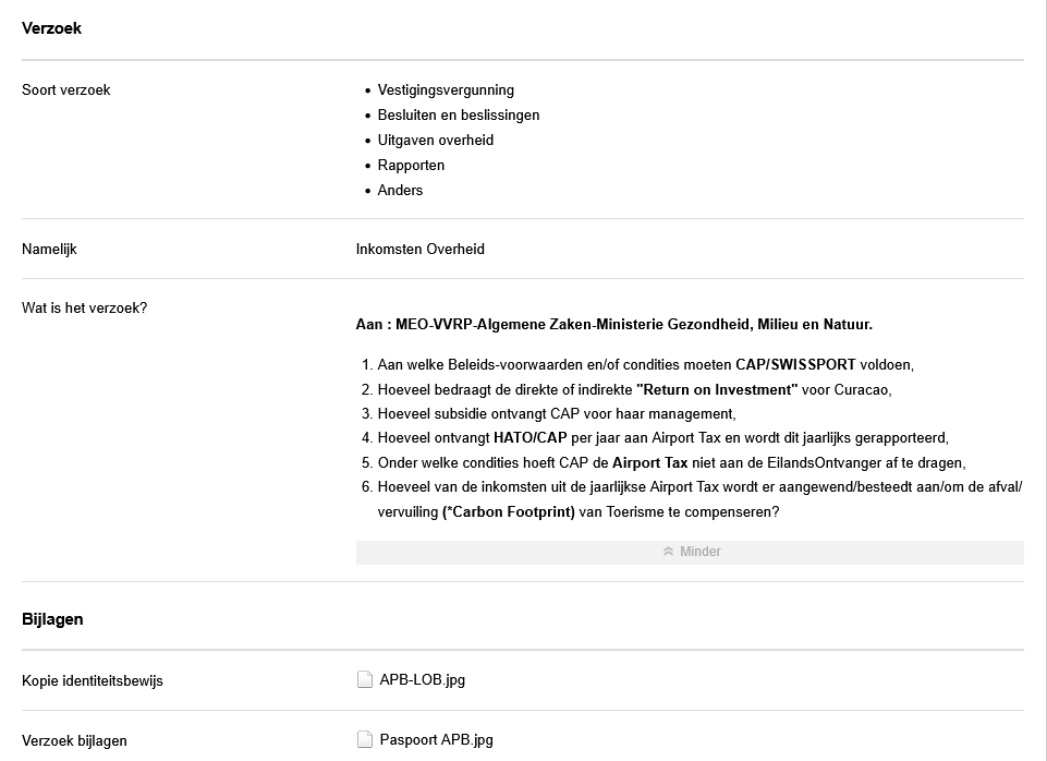 Landsverordening openbaarheid van bestuur (LOB) verzoek. Uw registratie dd 27/12/2025 is bij ons bekend onder zaaknummer 603472.